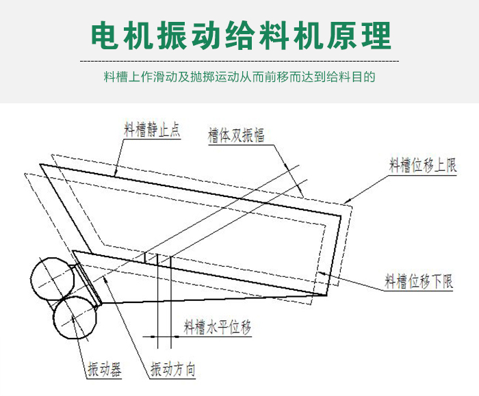 電機振動給料機激振器個是由二特定位置的偏心軸以齒輪相嚙合組成,裝配時必須使兩齒輪按標記相嚙合,通過電機驅(qū)動,使兩偏心軸旋轉(zhuǎn),從而產(chǎn)生巨大合成的直線激振力,使機體在支承彈簧上作強制振動,物料則以此振動為動力,在料槽上作滑動及拋擲運動,從而使物料前移而達到給料目的。