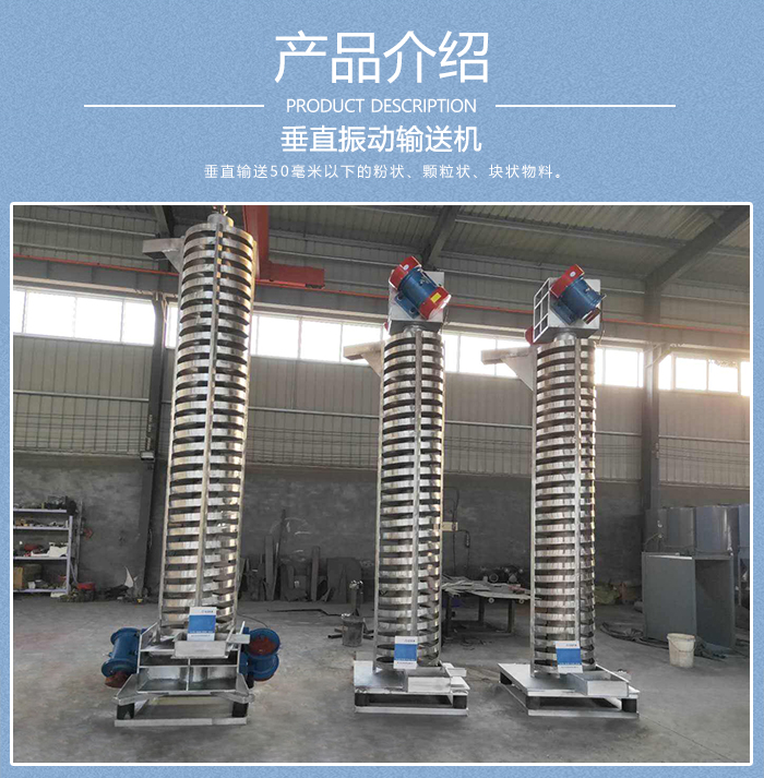 垂直振動輸送機主要用于礦山、冶金、化工、輕工、建材、機械、糧食等各行業垂直輸送50毫米以下的粉狀、顆粒狀、塊狀物料,在連續供料條件下也可用于輸送具有滾動性的團狀物料,可以代斗式提升機、傾斜使用皮帶運輸機等。
