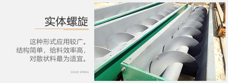 1)實(shí)體螺旋,這種形式應(yīng)用較廣。它結(jié)構(gòu)簡單,給料效率高,對散狀料為適宜。