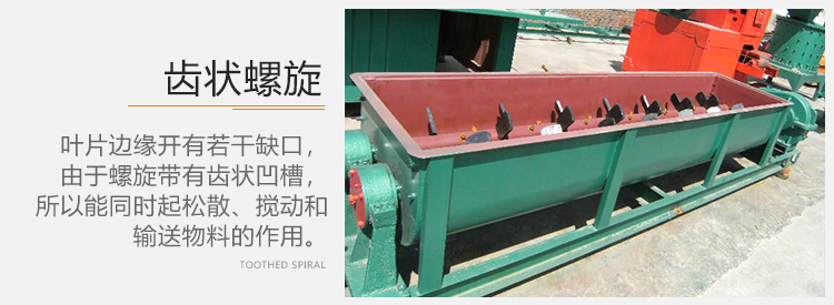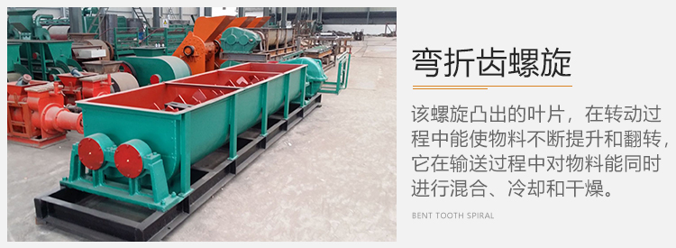 4)彎折齒螺旋,該螺旋凸出的葉片,在轉(zhuǎn)動(dòng)過程中能使物料不斷提升和翻轉(zhuǎn),它在輸送過程中對物料能同時(shí)進(jìn)行混合、冷卻和干燥。