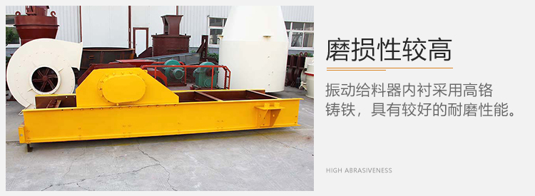 ②因?yàn)榕懦鼋固康哪p性較高,所以要考慮振動給料器的耐磨損設(shè)計(jì)。振動給料器內(nèi)襯采用高鉻鑄鐵,具有較好的耐磨性能。