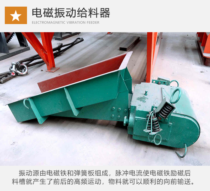 電磁式給料器:振動源由電磁鐵和彈簧板組成,脈沖電流使電磁鐵勵磁后,料槽向后運(yùn)動,同時在彈簧板的作用力下,料槽就產(chǎn)生了前后的高頻運(yùn)動,是物料可以順利的向前輸送。